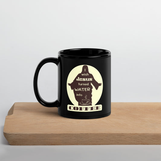 Black Glossy Mug | I Wish Jesus Turned Water Into Coffee